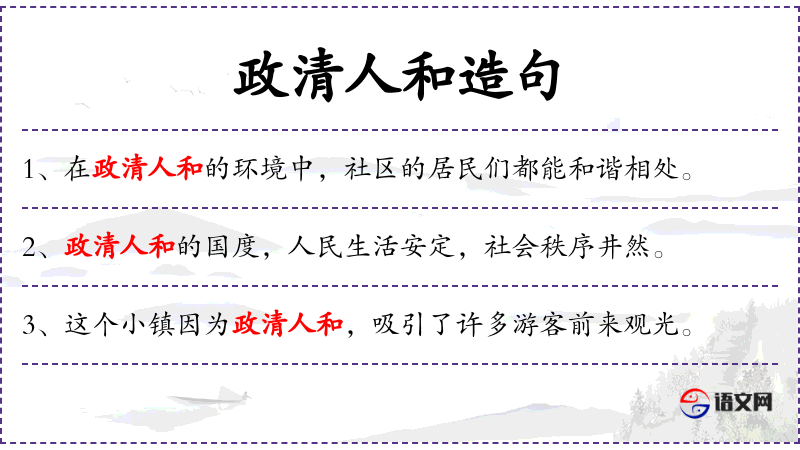 - 政清人和:这个成语反映了**传统文化中对政治清明和社会和谐的追求。