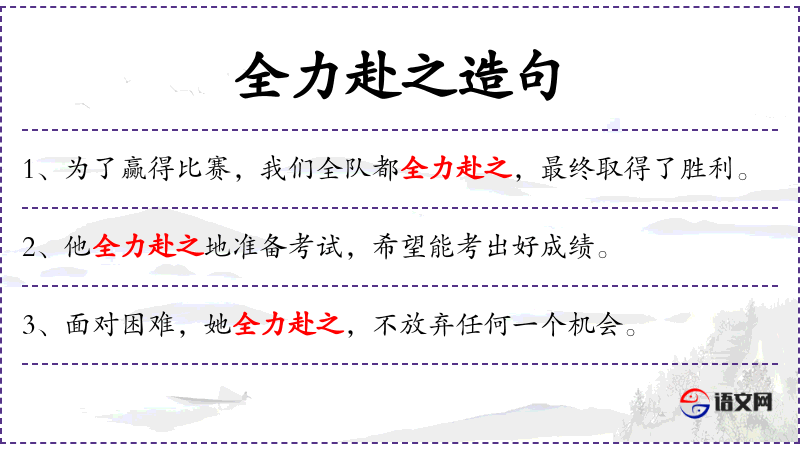 1. 【全力赴之】 赴:前往。把全部力量都投入进去。