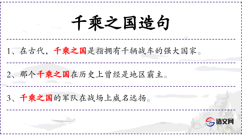 - 千乘之国:这个词汇源自古代的军事编制,一乘等于一辆战车和相应的士兵。这个表达体现了的历史文化。