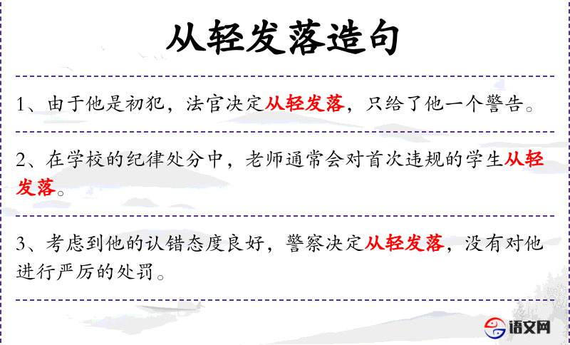 - 从轻发落:指对错误或罪行采取较轻的处理方式。