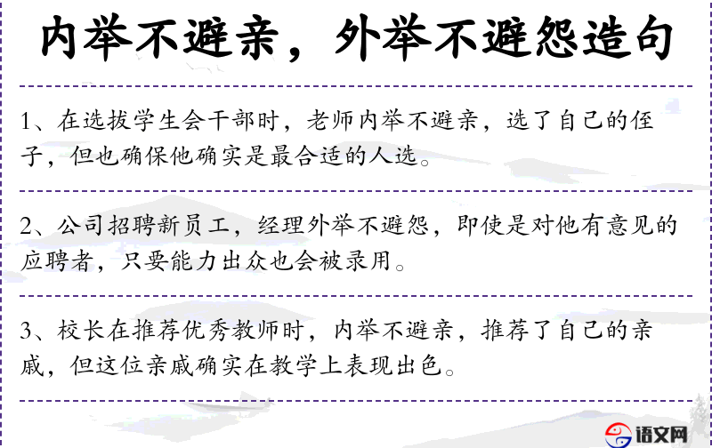 句子:“在推荐优秀志愿者时,组织者外举不避怨,即使是对他有所抱怨的志愿者,只要服务出色也会得到表彰。”