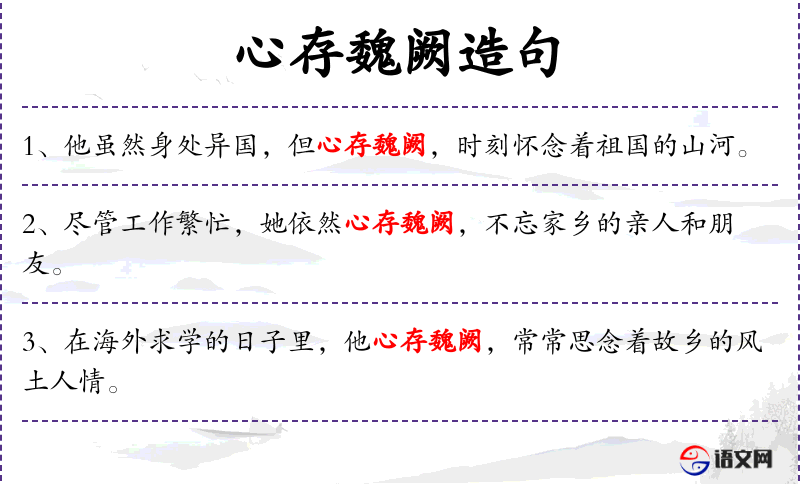- 她心中始终怀有对魏阙的向往,即使在忙碌的工作中,也不曾忘记与父母的联系。