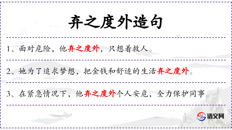 - 弃之度外:成语,表示不顾一切,把某事放在一边。