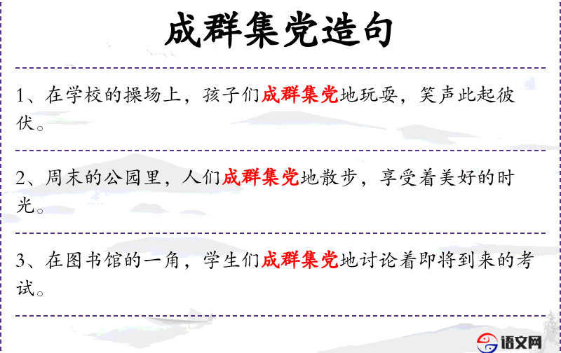 - 成群集党:形容人们聚集在一起,通常用于形容人群的聚集。