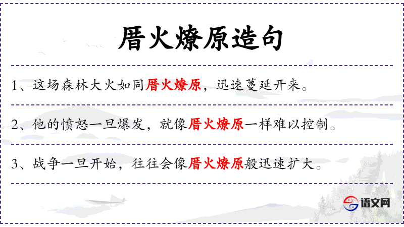 - 厝火燎原:成语,比喻事情一旦开始就迅速蔓延,无法控制