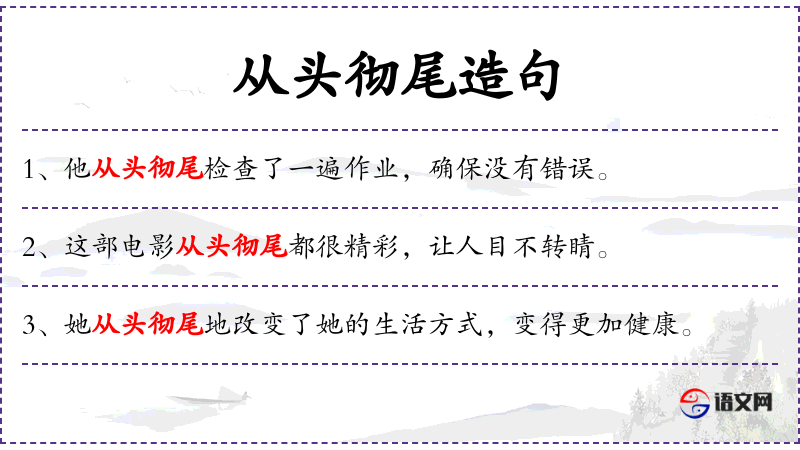 句子:“她从头彻尾地研究了这个课题,写出了一篇优秀的论文。”
