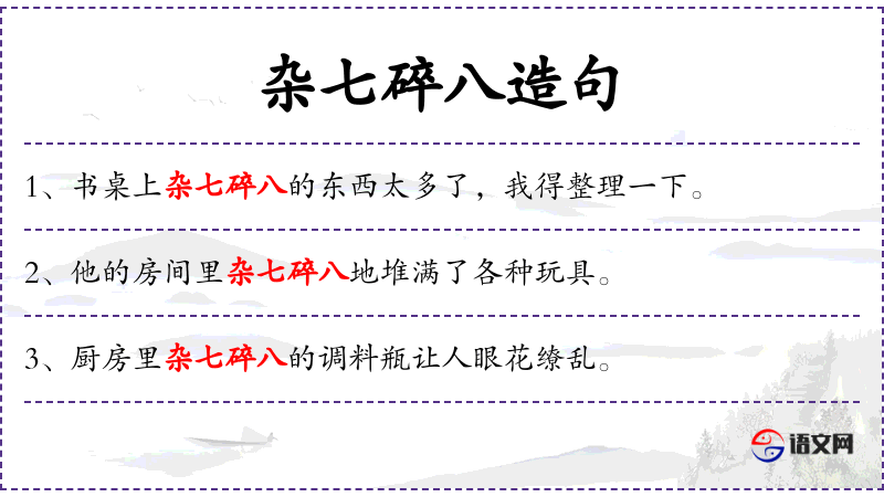 3. 【杂七碎八】 - 形容十分混杂。