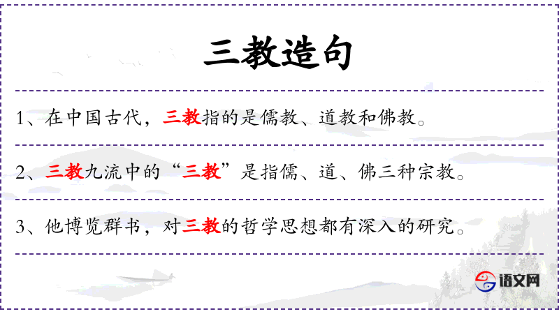1. 【三教】 汉儒谓夏尚忠,殷尚敬,周尚文,称为"三教"; 指儒家的施教内容,包括六德﹑六行﹑六艺﹑合称"三德"; 佛教传入我国后,称儒﹑道﹑释为"三教"。