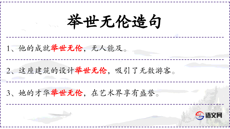 - 举世无伦:形容词短语,意思是“在全世界范围内都是独一无二的”。