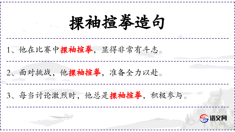 - 英文:使用了“rolled up his sleeves”和“clenched his fists”来形象地描述准备和决心。