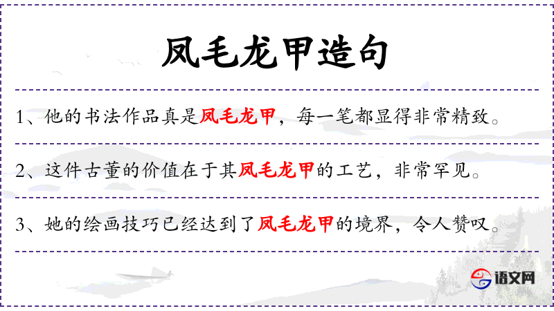- 宾语:“凤毛龙甲的艺术魅力”