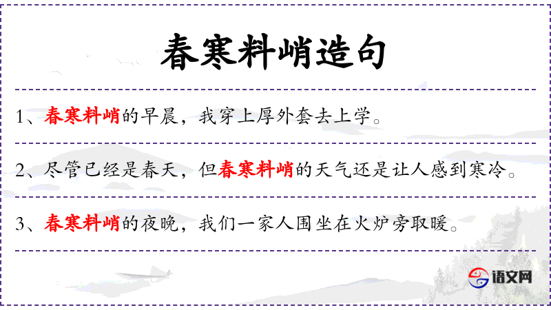 - 主语:春寒料峭的天气