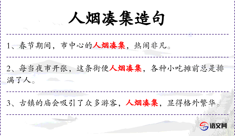- 宾语:无明确宾语,但“人烟凑集”和“人山人海”描述了人群的状态