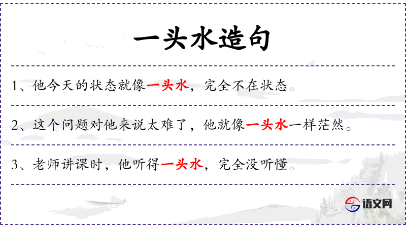 1. 【一头水】 - 谓没有主见,象水一样,哪头重就向那头倒。