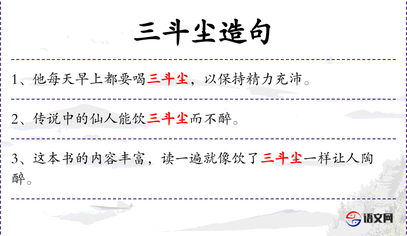 1. 【三斗尘】 - 指令人难食之物。三斗,极言其多; 比喻抑郁之气。