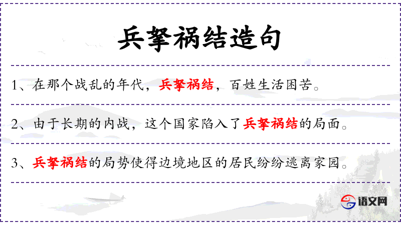 - 兵挐祸结:这个成语反映了**文化中对战争后果的深刻认识和警惕。