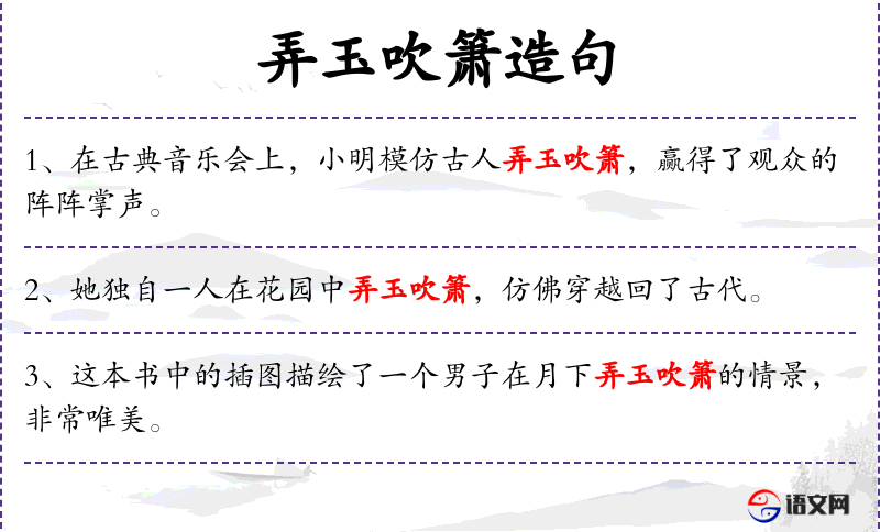 - 弄玉吹箫:这一表达蕴含了**古代的音乐文化,玉和箫都是古代文人雅士常用的乐器,象征着高雅和艺术修养。
