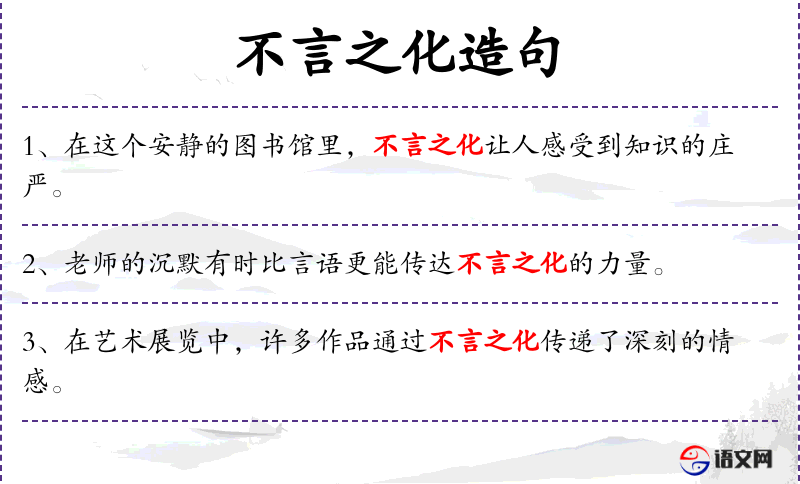 1. 【不言之化】 化:教化。不通过语言进行教育而收到的感化作用。