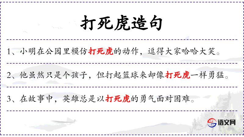 打死虎这个成语源自**传统文化,象征着面对困难时的勇敢和决心。在现代社会,这个成语常用来形容在竞争激烈的环境中不畏艰难,勇往直前的精神。