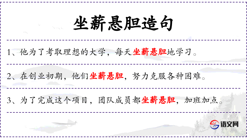 - 文化意义:“坐薪悬胆”体现了**文化中对坚韧不拔和勇敢面对困难的价值观念。