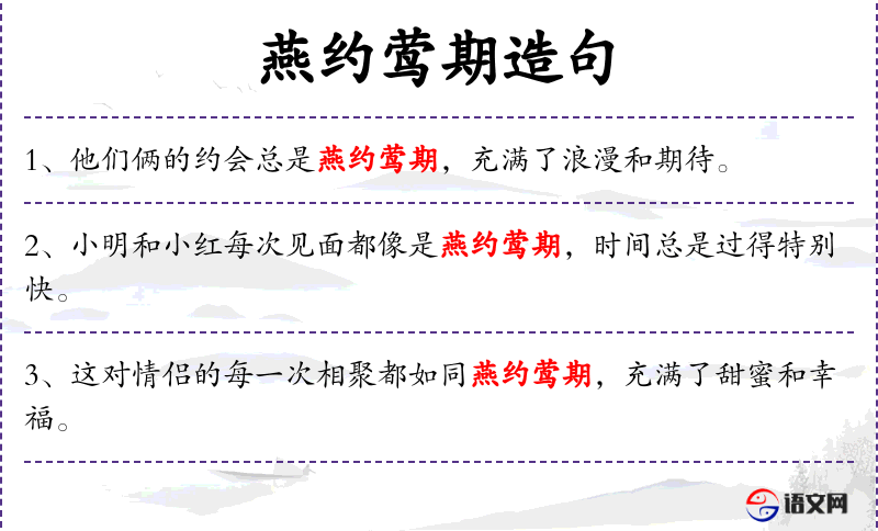 1. 【燕约莺期】 - 比喻相爱的男女约会的时日。