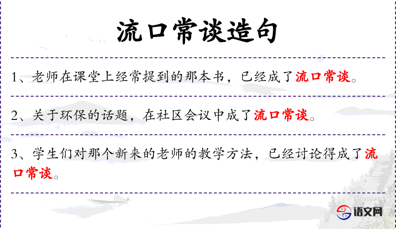 1. 【流口常谈】 - 人人挂在嘴上的老话。