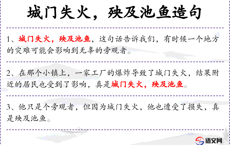 - 他的计划本已周密,却因城门失火而被打乱,真是意外之灾。