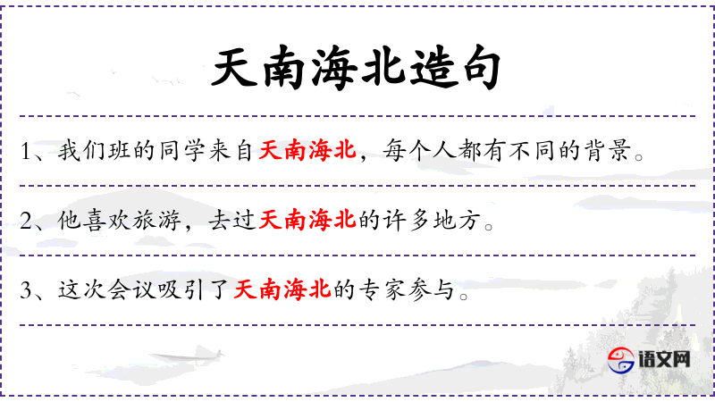 成语“天南海北”: