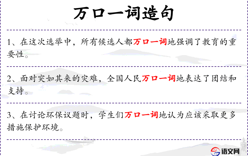 - 使用“万口一词”强调了学生们的共识,这可能在实际交流中用于强调观点的一致性。