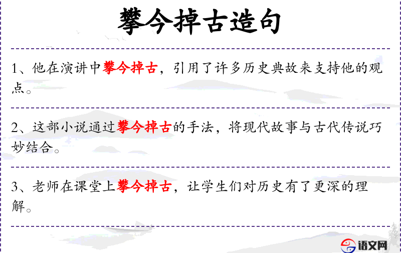 - 攀今掉古:指在演讲中引用历史典故来支持现代观点。