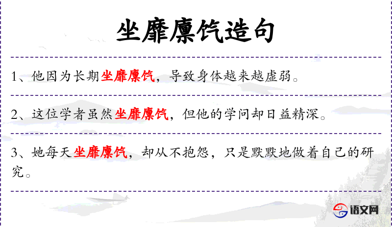 - 成语“坐靡廪饩”:这个成语在**文化中用来形容人长时间坐着工作,消耗了很多资源。