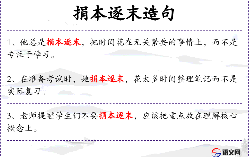 - 学生们被老师告知,应避免捐本逐末,而应专注于掌握核心概念。