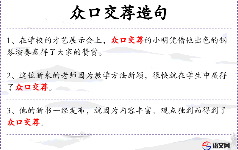 1. 【众口交荐】 许多人一致推荐。