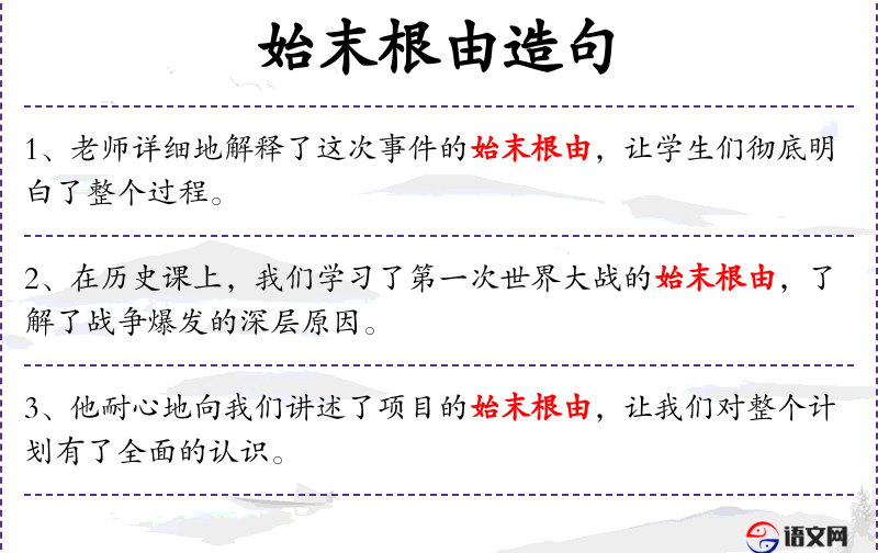 1. 【始末根由】 指事情开始到结尾的经过和缘由。