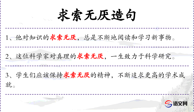 4. 【求索无厌】 - 求:追求;索:搜索;厌:满足。形容贪欲没有满足的时候。