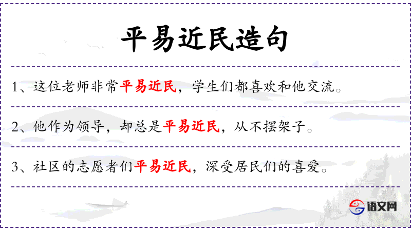 - 文化意义:“平易近民”体现了**文化中对谦逊、亲和力的重视。
