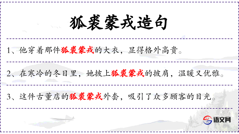 6. 【狐裘蒙戎】 - 狐裘的皮毛凌乱。用以比喻国政混乱。蒙茸,蓬乱的样子。
