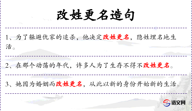 - 宾语:“改姓更名”