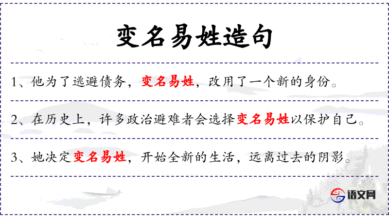 - 变名易姓:改变自己的名字和姓氏,通常是为了隐藏身份。