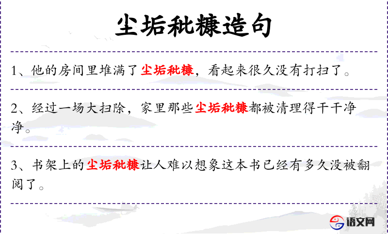 - 尘垢秕糠:指书架上的灰尘和杂物,形容书架长时间未被打扫。