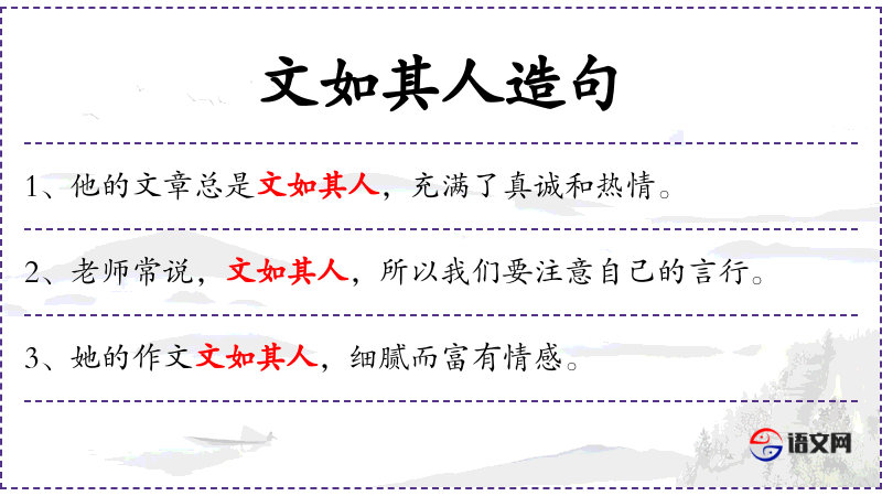 - 文如其人:成语,意思是文章的风格和作者的性格相似。