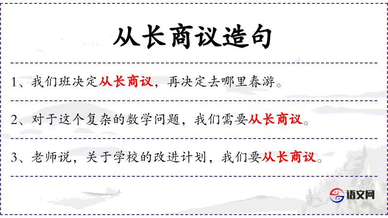 句子:“在决定班级规则时,我们班从长商议,确保每个人都同意。”