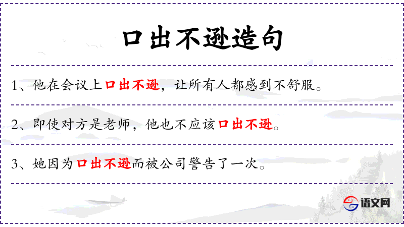 1. 【口出不逊】 逊:谦逊、恭顺。说出的话非常不谦逊。