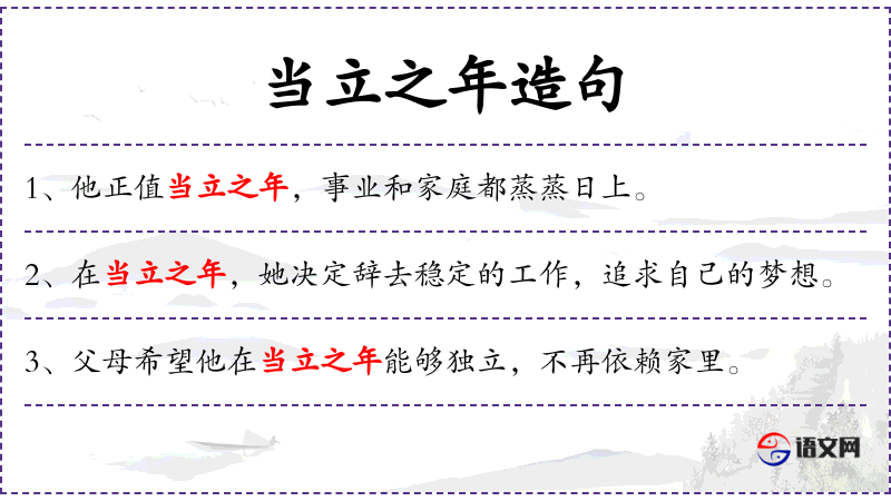 - 当立之年:通常指30岁左右,是一个汉语成语,用来形容一个人到了成熟、稳定的年龄。