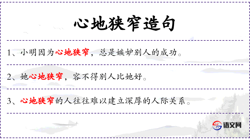 - 心地狭窄:形容词短语,形容一个人心胸不宽广,缺乏宽容和慷慨。