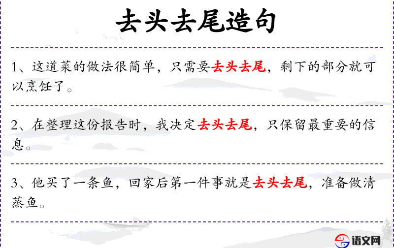 - 去头去尾:固定搭配,表示去除开头和结尾。