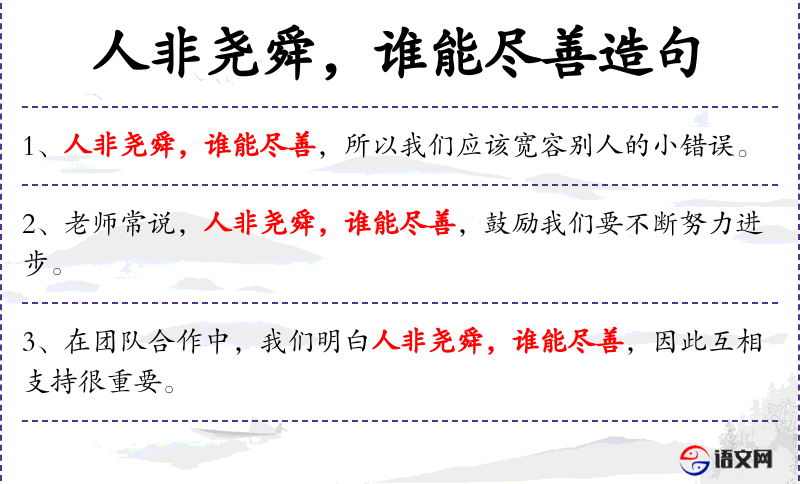 - 人非尧舜:成语,意思是没有人是完美的,源自尧舜是**古代的圣王。