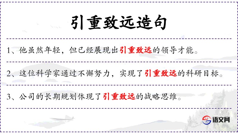- 引重致远的重要性:这里的“引重致远”是成语,意思是承担重任并达到远大的目标;“重要性”是名词,指某事的重要程度。