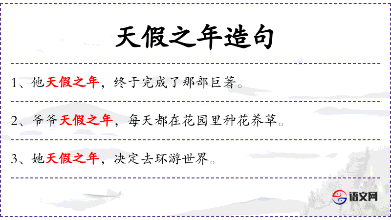 句子:“他天假之年,决定写一本回忆录。”