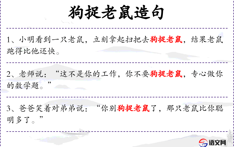 1. 【狗捉老鼠】 - 比喻做外行事或多管闲事。